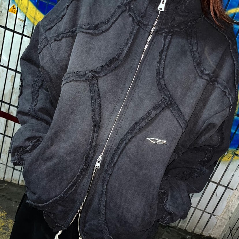 (現+預購)GAMBLE立體拼接拉鍊外套/黑