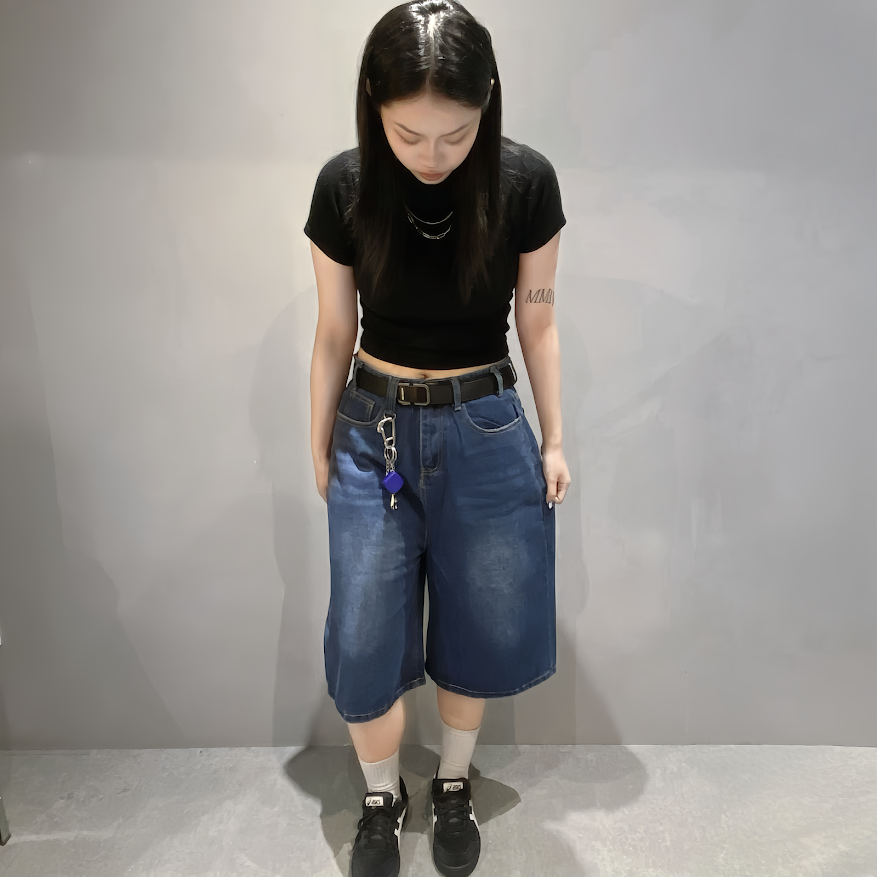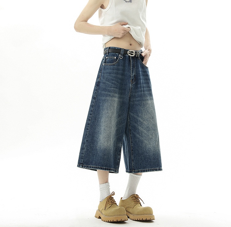 闊腿直筒寬鬆七分褲/深藍