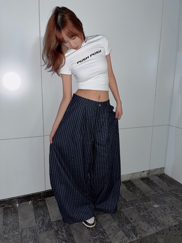 (現+預購)PUSH PUSH條紋寬鬆長褲/藍