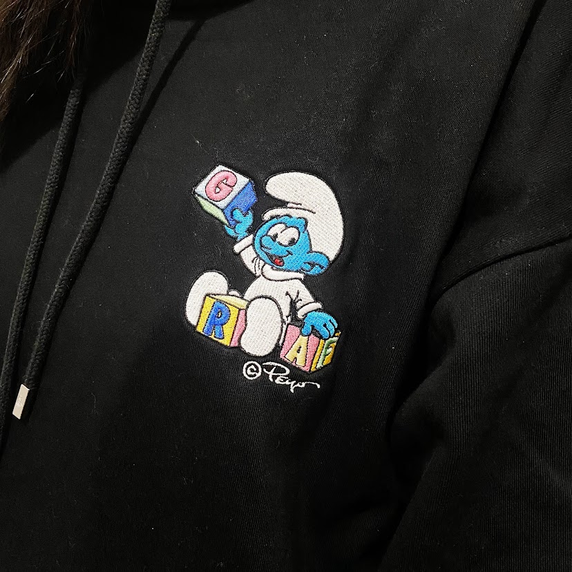 • <GRAF x 藍色小精靈聯名>精靈跳舞帽T/灰白 精靈跳舞帽T/灰白 NT$2,580