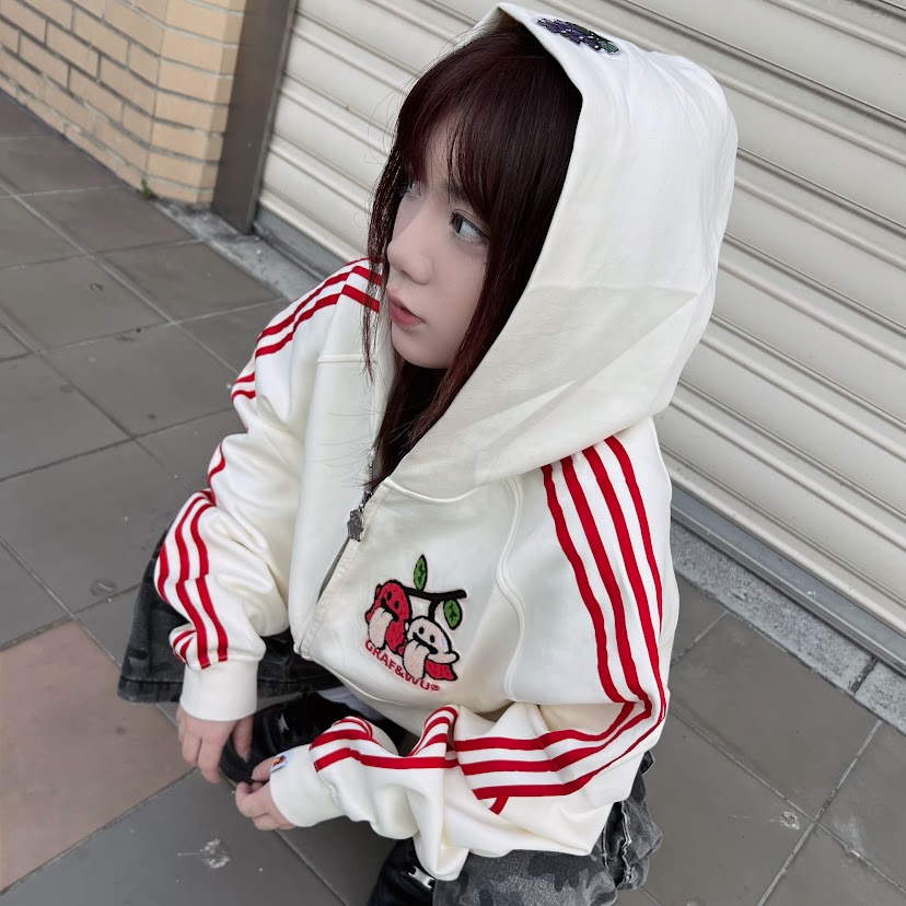 GRAF荔枝可愛鬼連帽外套/米白