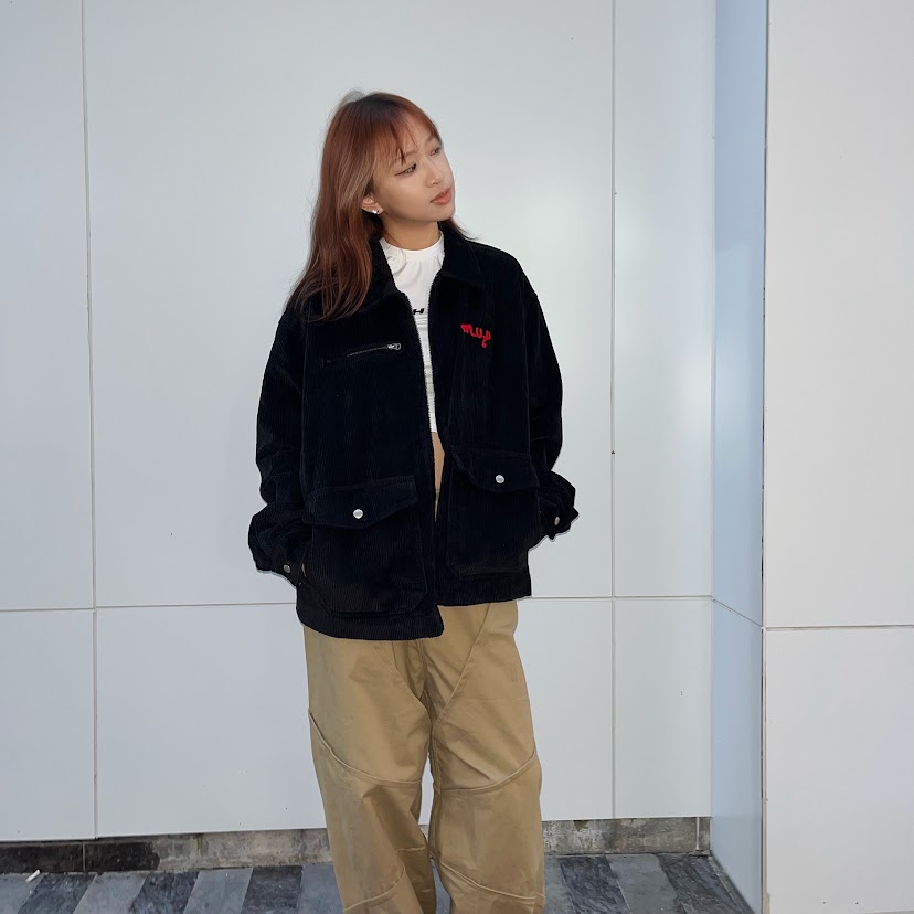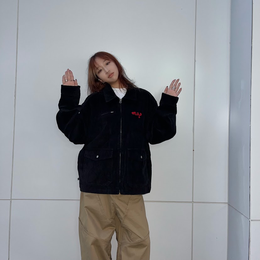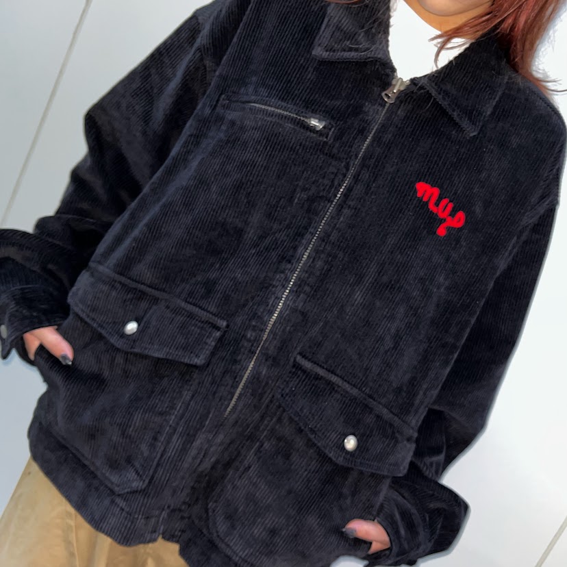 MIDUPDATE刺繡賽車燈芯絨外套/黑